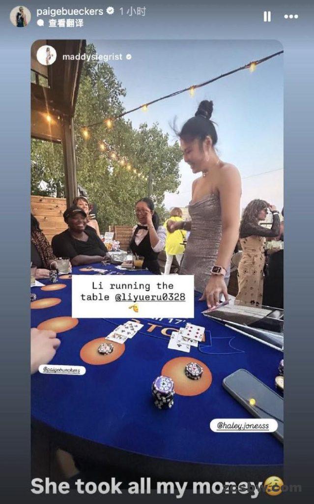 北京时间今日,中国女篮国手李月汝与自己在WNBA达拉斯飞翼队的队友们一同外出游玩,她们一起玩了Blackjack(21点)。