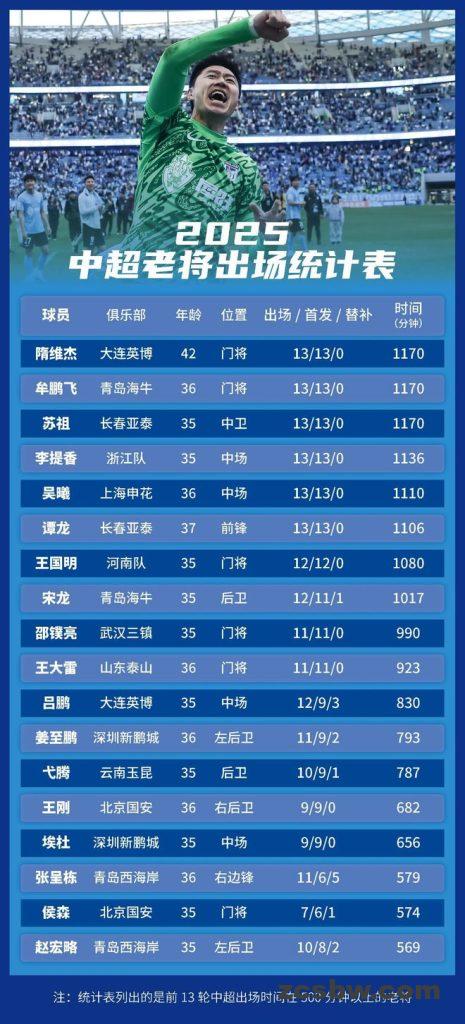 雷速体育5月27日讯 据《足球》报道,本赛季中超有38位年满35岁及以上的老将,如果算上夏季即将年满35岁的门 […]