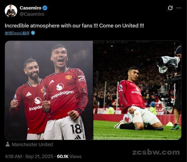 直播吧9月21日讯 本轮英超焦点战,曼联2-1战胜切尔西。赛后,此役染红的卡塞米罗发文庆祝胜利。 卡塞米罗晒出 […]