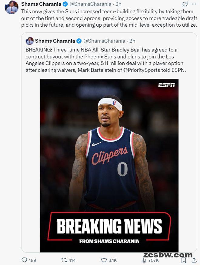 北京时间7月17日凌晨,ESPN名记Shams透露,菲尼克斯太阳队与布拉德利-比尔达成买断协议,他将在度过澄清 […]