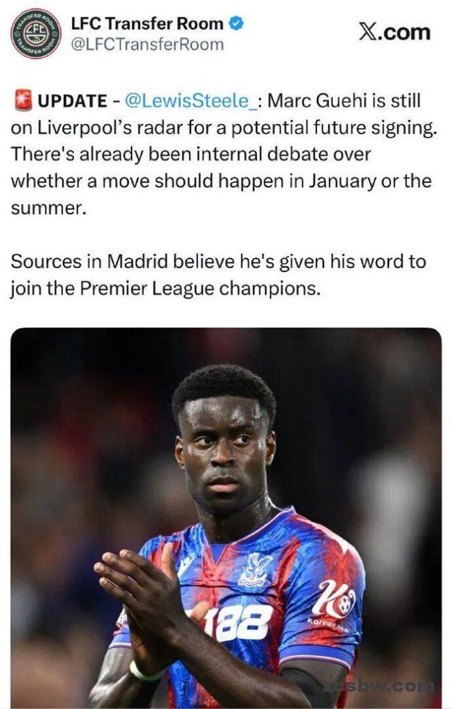 斯蒂尔:格伊仍然在利物浦的雷达上,仍可能在未来签下他,至于转会在1月还是夏季进行,内部已经存在争议。而来自马德里的消息人士认为,他已经给了利物浦承诺。