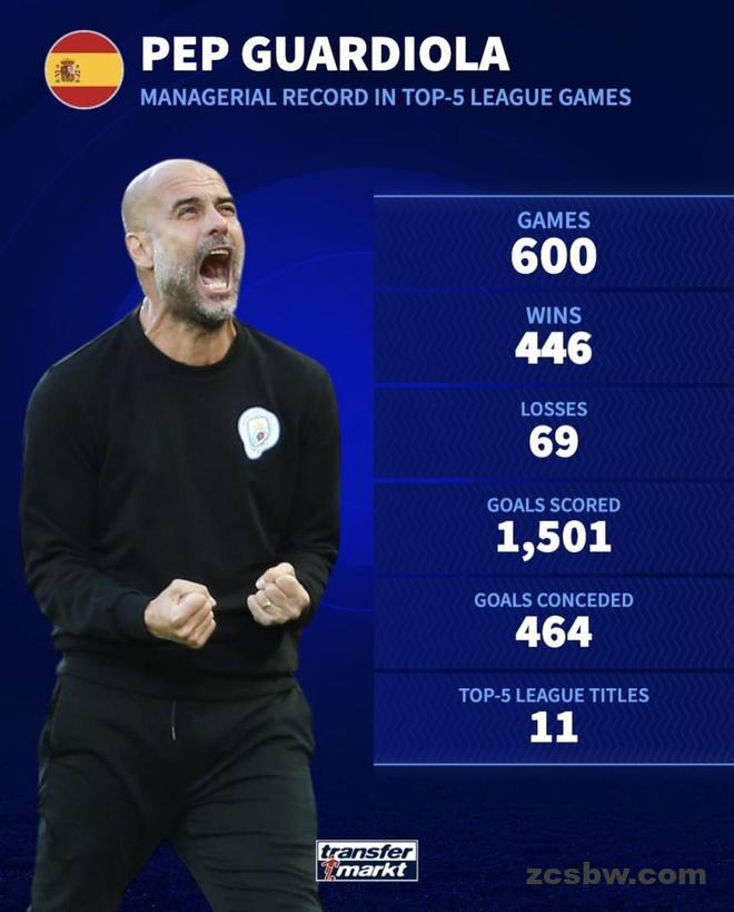 近日,瓜迪奥拉在执教顶级五大联赛比赛中达到了600场里程碑——下面是达成这一里程碑的教练胜率排行榜,展示谁在这些“至少 200 场”高强度联赛中效率最高。