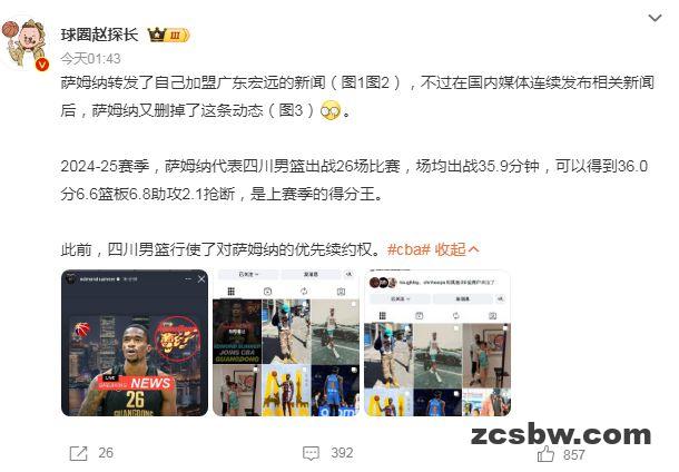 如今根据chnhoops报道,萨姆纳加盟广东男篮。四川男篮保留了萨姆纳的外援优先续约权,但四川男篮显然今夏陷入困境,他们将外援优先续约权交易给广东男篮也不难理解。萨姆纳本人转发了该报道,但在国内媒体连续报道后,萨姆纳目前已删除了如此动态。