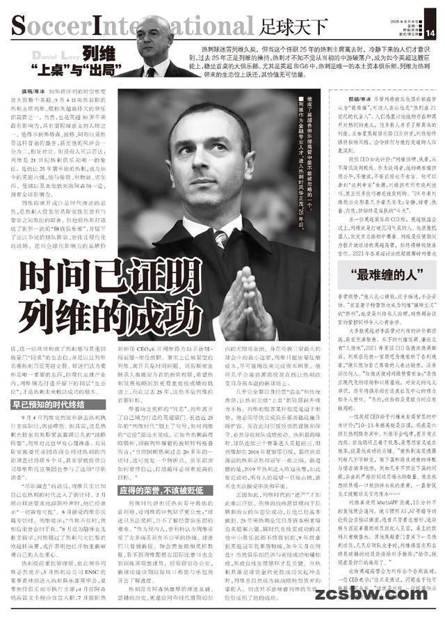 撰稿/寒冰如果将评判的时空维度放大到整个英超,9月4日突然辞职的热刺主席列维,堪称英超最伟大的俱乐部高管之一。当然,也是英超30多年来最有影响力,具有里程碑意义的人物之一。他得不到弗格森、温格、阿布拉莫维奇这样普遍的盛誉,甚至他的风评会一分为二,相互对立。但没有人可以否认:列维是21世纪热刺俱乐部唯一的象征。是他让25年前平庸的热刺,成为如今的英超六强,能与曼联、利物浦、切尔西、曼城以及北伦敦死敌阿森纳一道,拥有全球影响力。