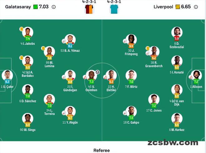 加拉塔萨雷首发:1-恰基尔、90-辛格、6-达文森·桑切斯、42-巴尔达什彻、4-伊斯梅尔-雅各布斯、34-托雷拉、99-勒米纳、11-阿克金(71’7-罗兰-绍洛伊)、20-京多安(75’8-萨拉)、53-伊尔马兹(85’17-埃尔马利)、45-奥斯梅恩(71’9-伊卡尔迪)。